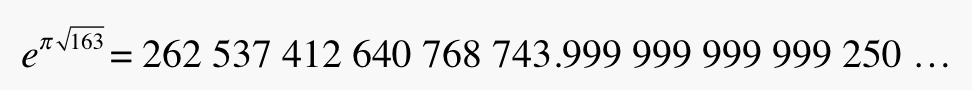 where exponentiation of a transcendental real number by a transcendental imaginary number yields an integer result, you might be surprised that you never came across this other one before. How come you missed it?