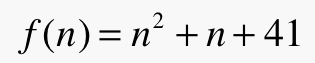 generates prime numbers as values for n = 0, 1, 2, … , 39, an unbroken sequence of the first forty natural number arguments. This seems to have been noticed first by Leonard Euler in 1772. Knowing that mathematics is the science of patterns, it is tempting to conclude that the formula generates primes for all natural number arguments, but this is not the case: f(40) is composite, as are many other values.