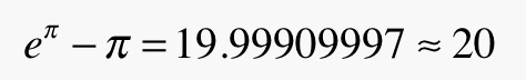 where exponentiation of a transcendental real number by a transcendental imaginary number yields an integer result, you might be surprised that you never came across this other one before. How come you missed it?