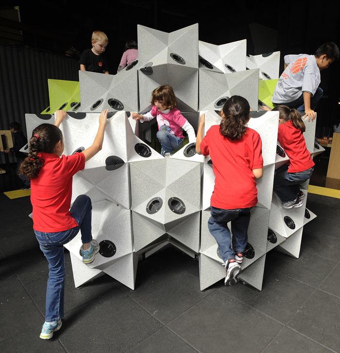 Certainly, exhibit designer Tom Rockwell, who led the design and construction of the Geometry Playground, and who took me on a tour of the exhibit recently, thinks there could be a positive classroom effect, but he will be satisfied if children, adults, and families simply have a fun few hours exploring a world of shapes. And that they are definitely doing, as I witnessed with my own eyes.