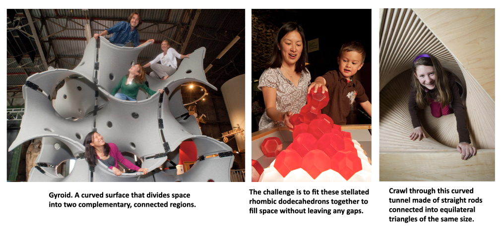 Mathematics is finally getting its fair share of the museum world. Hot on the heels of the launch of MoMath, Glen Whitney’s Museum of Mathematics, and the Swedish Mathematics Palace I discussed in my September, 2009 column, San Francisco’s excellent Exploratorium recently launched its Geometry Playground. All of the photos in this month’s column are from the exhibit. They were taken by Amy Snyder and are copyrighted by the Exploratorium, which kindly provided them to me for display here.